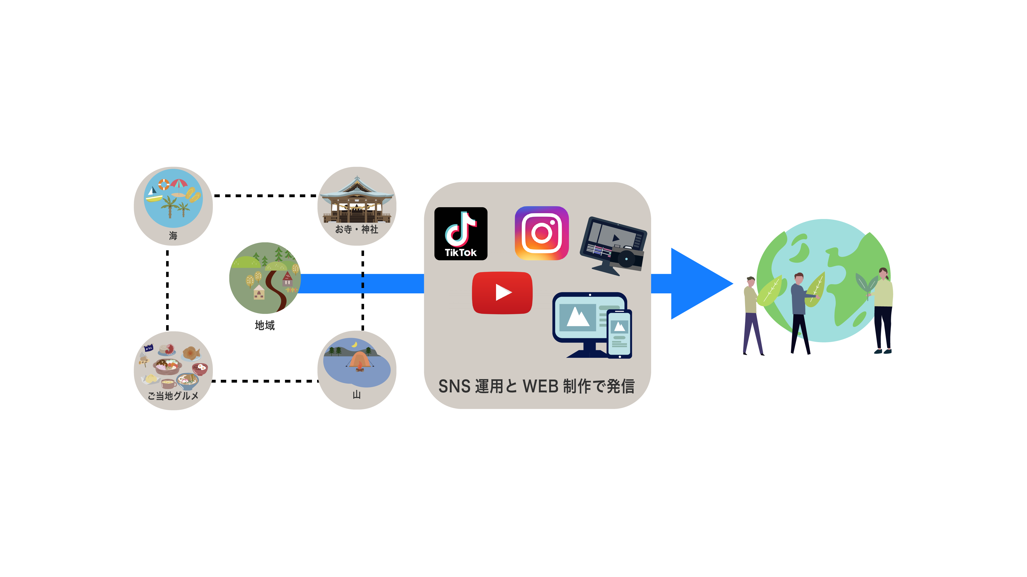 SNSや映像、Web制作を新しい観点から展開します。